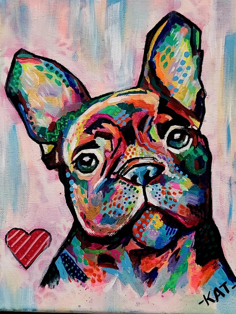 KAT KAVE ART specialises in unique pet portraits that are full of colour to bring your furry friend to life and that will become a talking point for your office or your home.